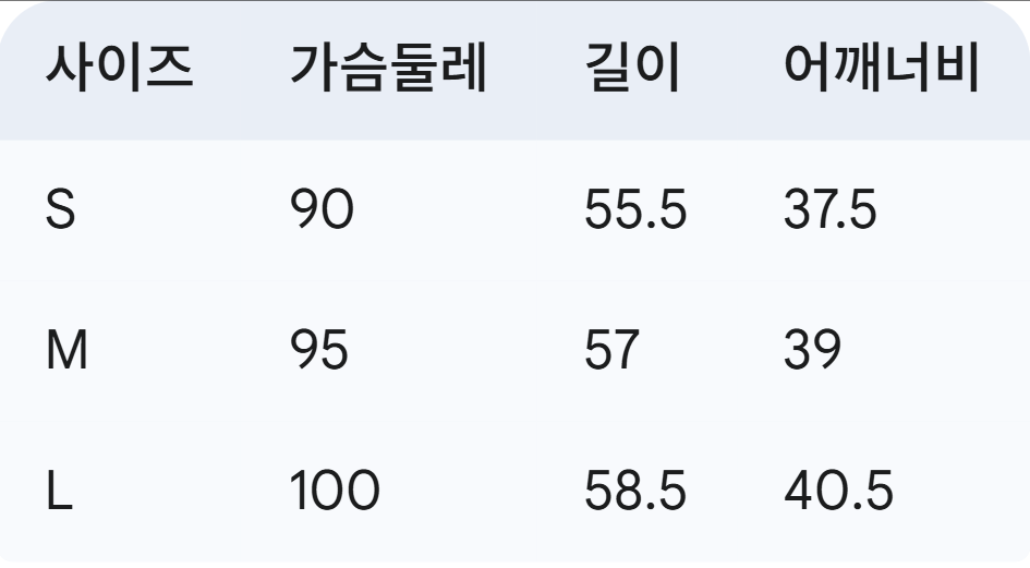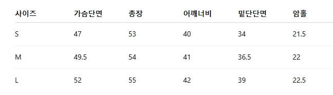 위의 사이즈 가이드는 참고용이며, 측정 방법에 따라 오차가 있을 수 있습니다.