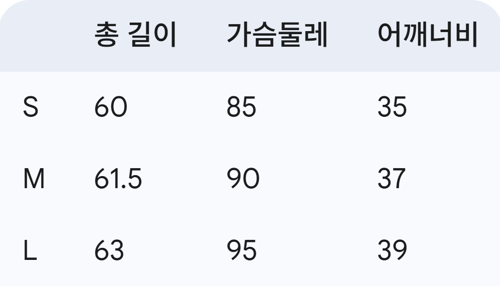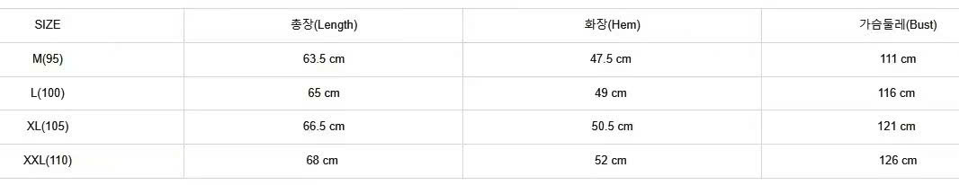 위의 사이즈 가이드는 참고용이며, 측정 방법에 따라 오차가 있을 수 있습니다.