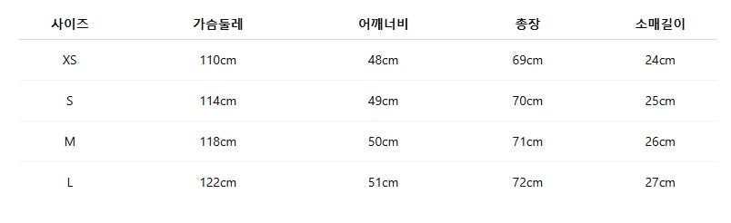 위의 사이즈 가이드는 참고용이며, 측정 방법에 따라 오차가 있을 수 있습니다.