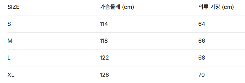 위의 사이즈 가이드는 참고용이며, 측정 방법에 따라 오차가 있을 수 있습니다.