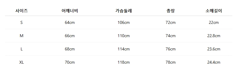 위의 사이즈 가이드는 참고용이며, 측정 방법에 따라 오차가 있을 수 있습니다.