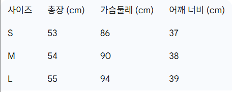 위의 사이즈 가이드는 참고용이며, 측정 방법에 따라 오차가 있을 수 있습니다.