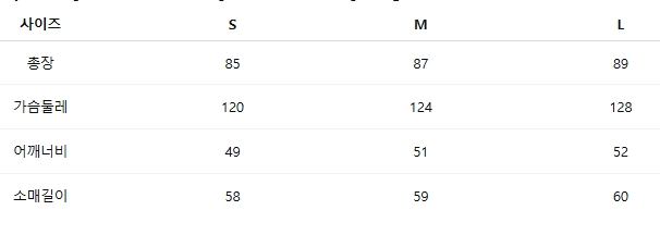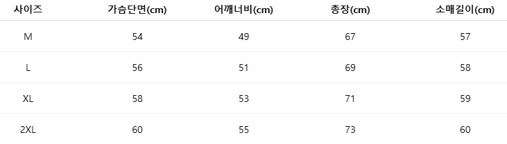 위의 사이즈 가이드는 참고용이며, 측정 방법에 따라 오차가 있을 수 있습니다.
