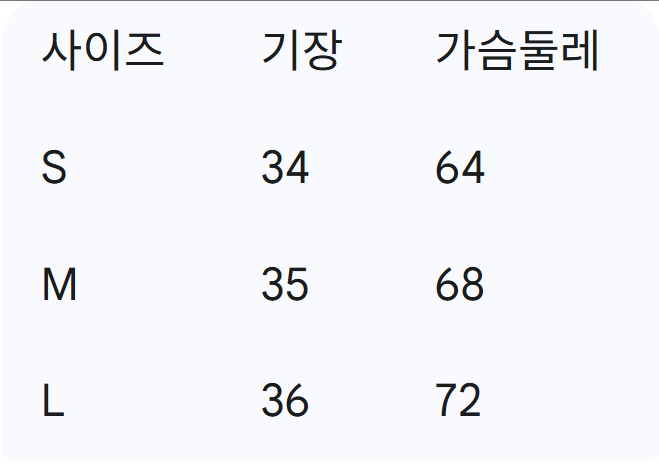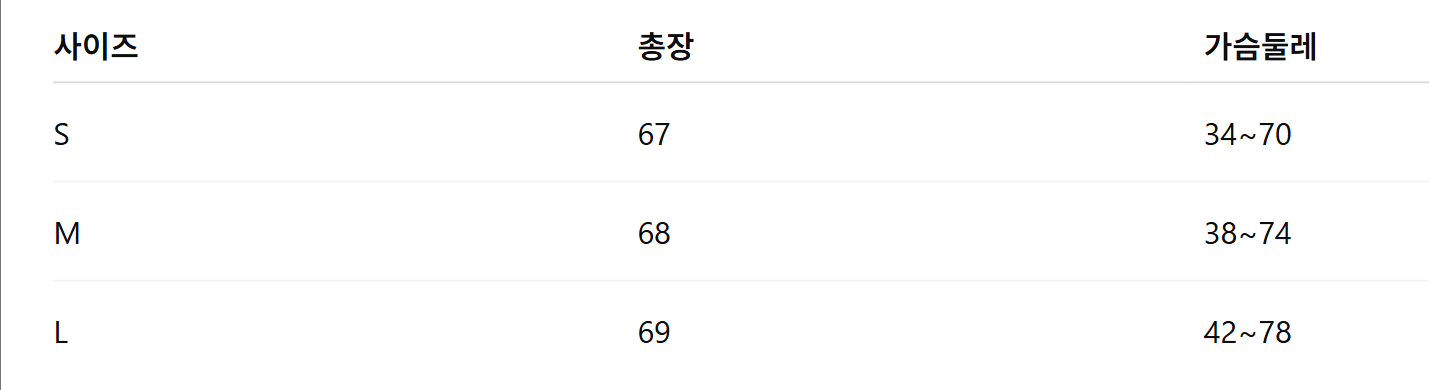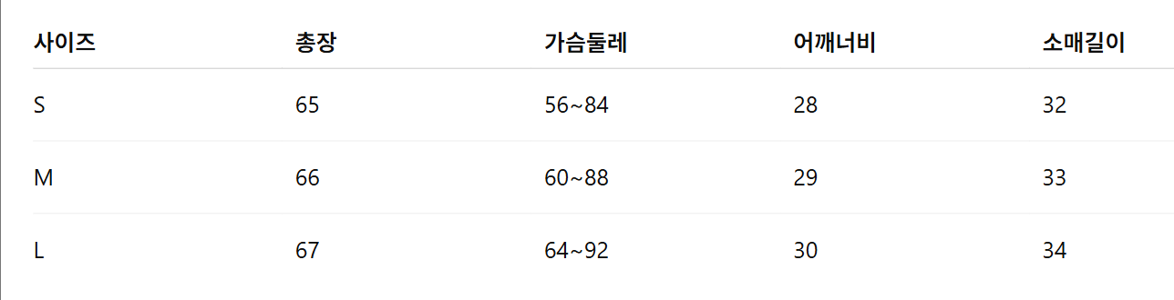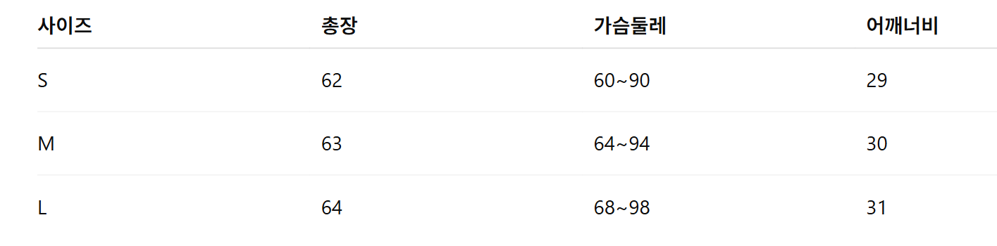 위의 사이즈 가이드는 참고용이며, 측정 방법에 따라 오차가 있을 수 있습니다.