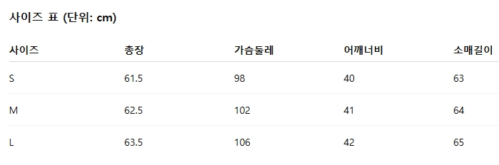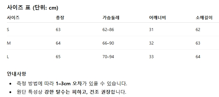 위의 사이즈 가이드는 참고용이며, 측정 방법에 따라 오차가 있을 수 있습니다.