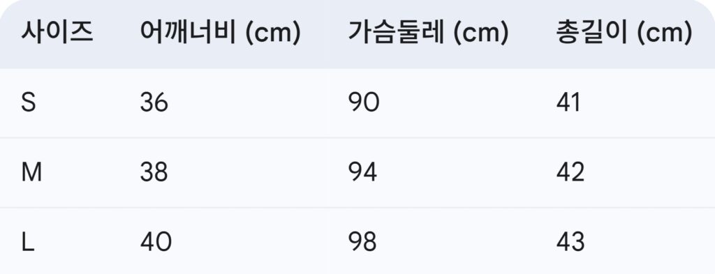 위의 사이즈 가이드는 참고용이며, 측정 방법에 따라 오차가 있을 수 있습니다.