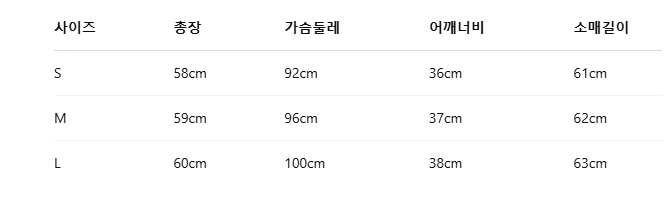 위의 사이즈 가이드는 참고용이며, 측정 방법에 따라 오차가 있을 수 있습니다