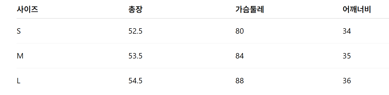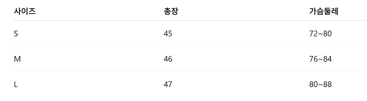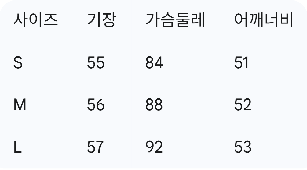 위의 사이즈 가이드는 참고용이며, 측정 방법에 따라 오차가 있을 수 있습니다.