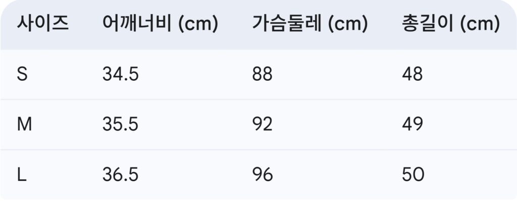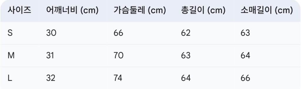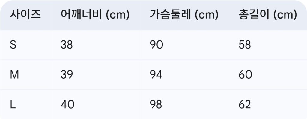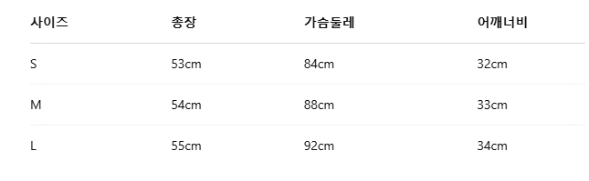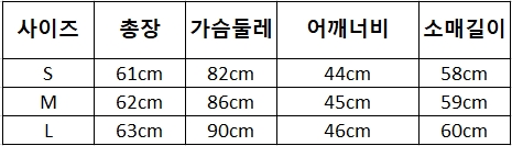 위의 사이즈 가이드는 참고용이며, 측정 방법에 따라 오차가 있을 수 있습니다.