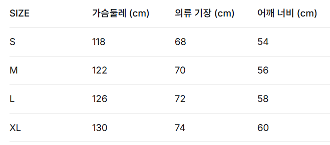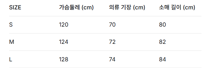 L 사이즈 - 어깨너비 47cm / 가슴둘레 106cm / 소매길이 63cm / 총장 69cm