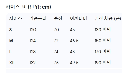 위의 사이즈 가이드는 참고용이며, 측정 방법에 따라 오차가 있을 수 있습니다.