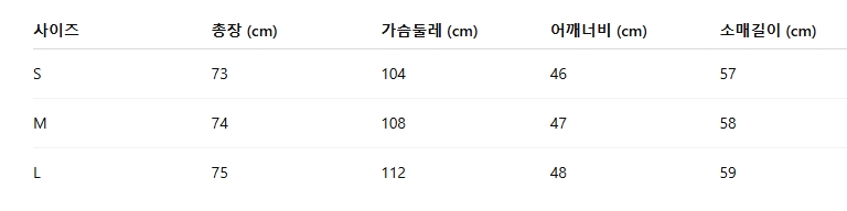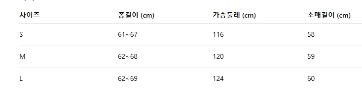 위의 사이즈 가이드는 참고용이며, 측정 방법에 따라 오차가 있을 수 있습니다.