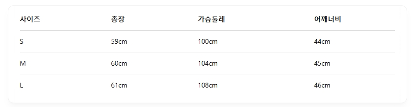 위의 사이즈 가이드는 참고용이며, 측정 방법에 따라 오차가 있을 수 있습니다.