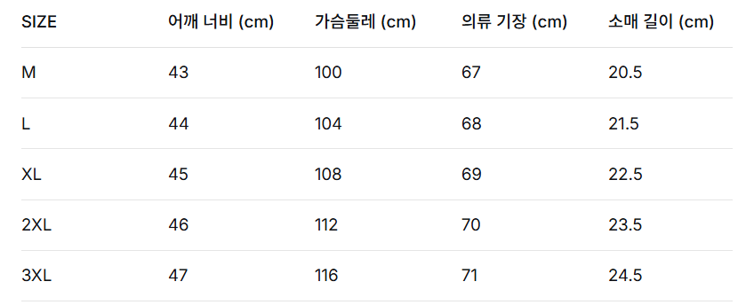 위의 사이즈 가이드는 참고용이며, 측정 방법에 따라 오차가 있을 수 있습니다.
