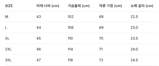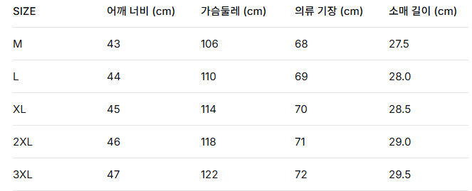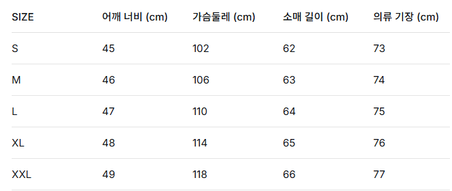 위의 사이즈 가이드는 참고용이며, 측정 방법에 따라 오차가 있을 수 있습니다.