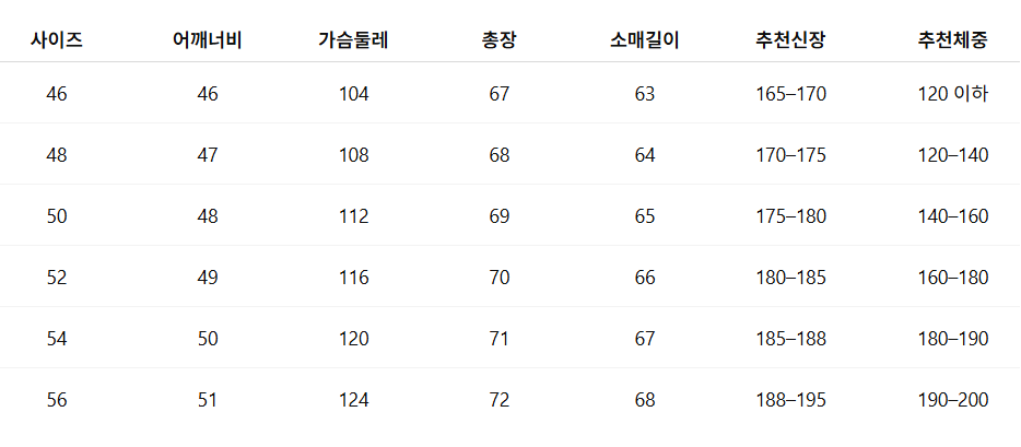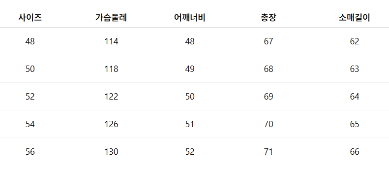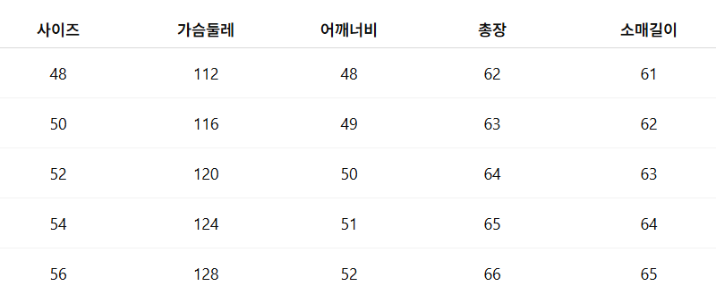 사이즈: 48 / 50 / 52 / 54 / 56