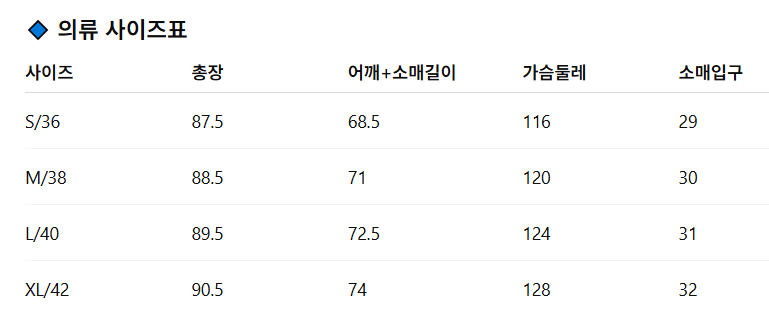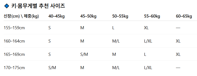 위의 사이즈 가이드는 참고용이며, 측정 방법에 따라 오차가 있을 수 있습니다.