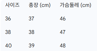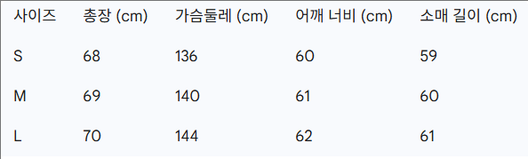 위의 사이즈 가이드는 참고용이며, 측정 방법에 따라 오차가 있을 수 있습니다.