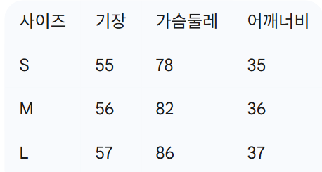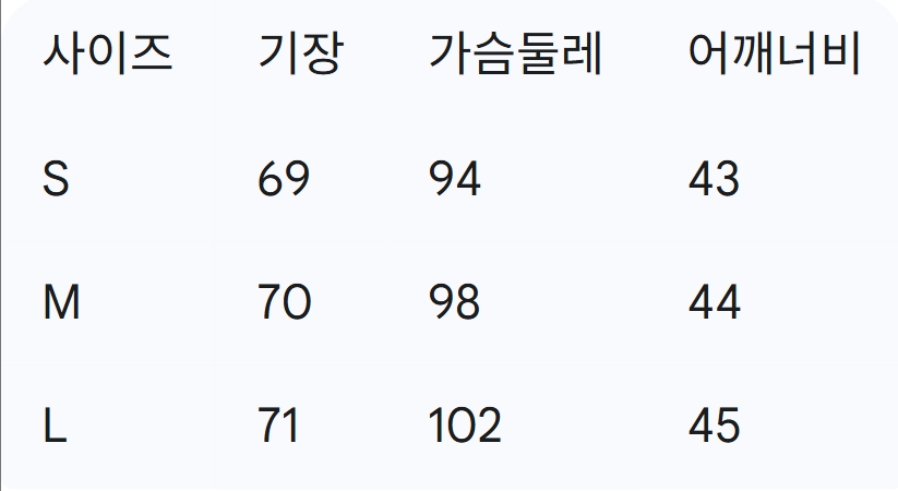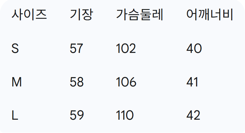 위의 사이즈 가이드는 참고용이며, 측정 방법에 따라 오차가 있을 수 있습니다.