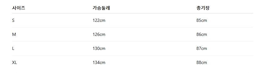 위의 사이즈 가이드는 참고용이며, 측정 방법에 따라 오차가 있을 수 있습니다.