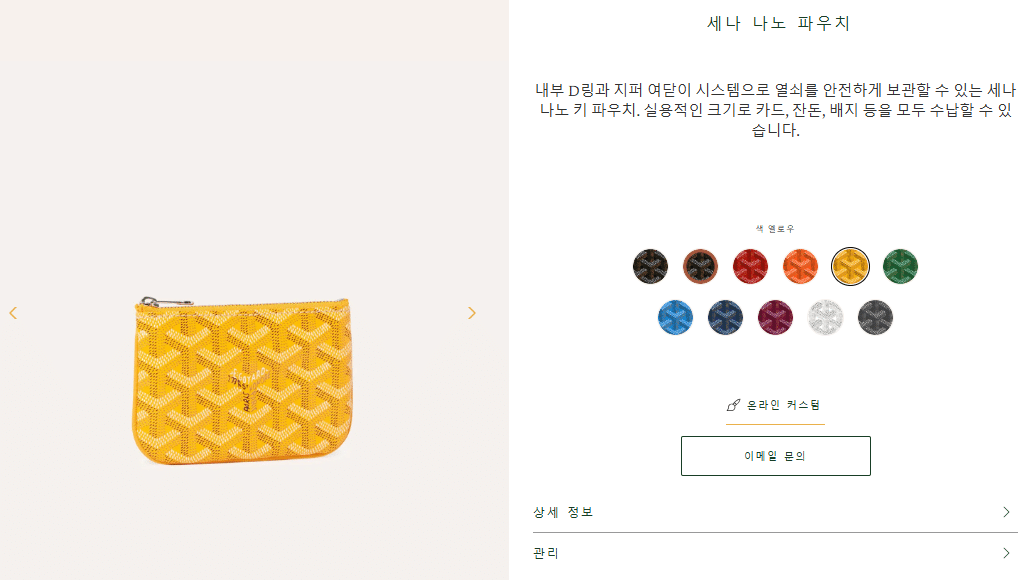 “[고야드] 세나 나노 파우치 (10 COLOR)”의 첫 상품평을 남겨 주세요