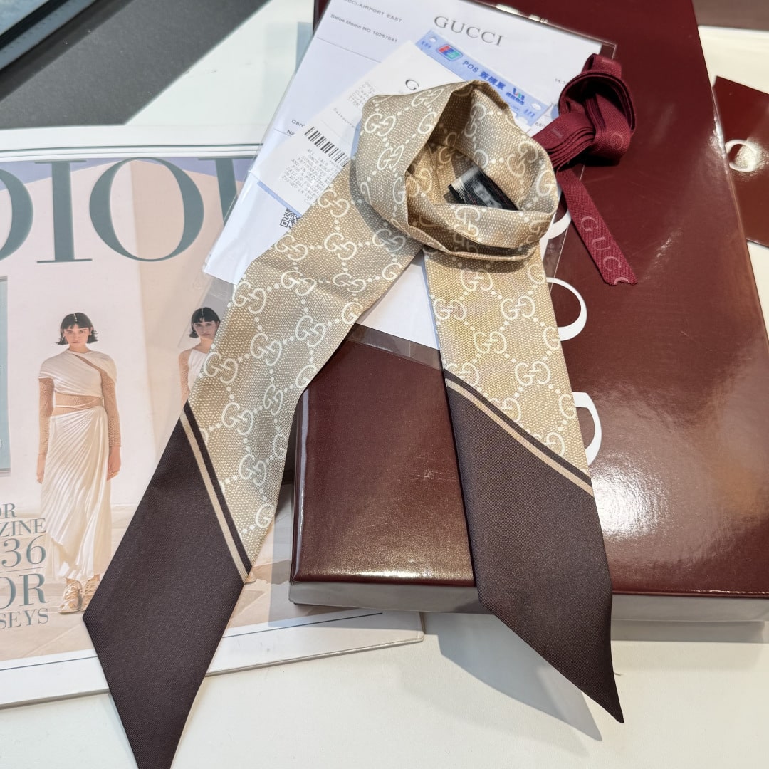 구찌의 영원한 클래식 GG 로고, 120cm 롱 사이즈가 선사하는 압도적인 우아함과 광택"