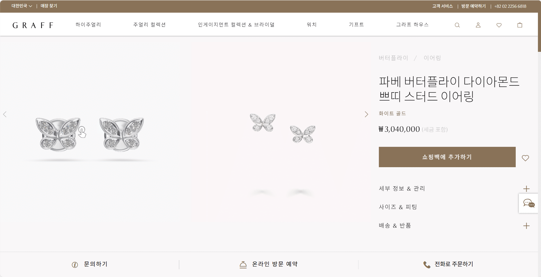 “[그라프] 파베 버터플라이 다이아몬드 쁘띠 스터드 이어링”의 첫 상품평을 남겨 주세요