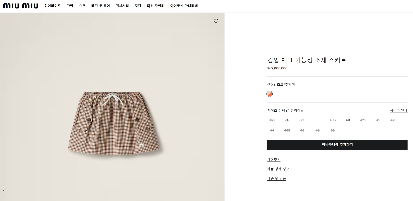 [미우미우] 깅엄 체크 기능성 소재 스커트 MG2385