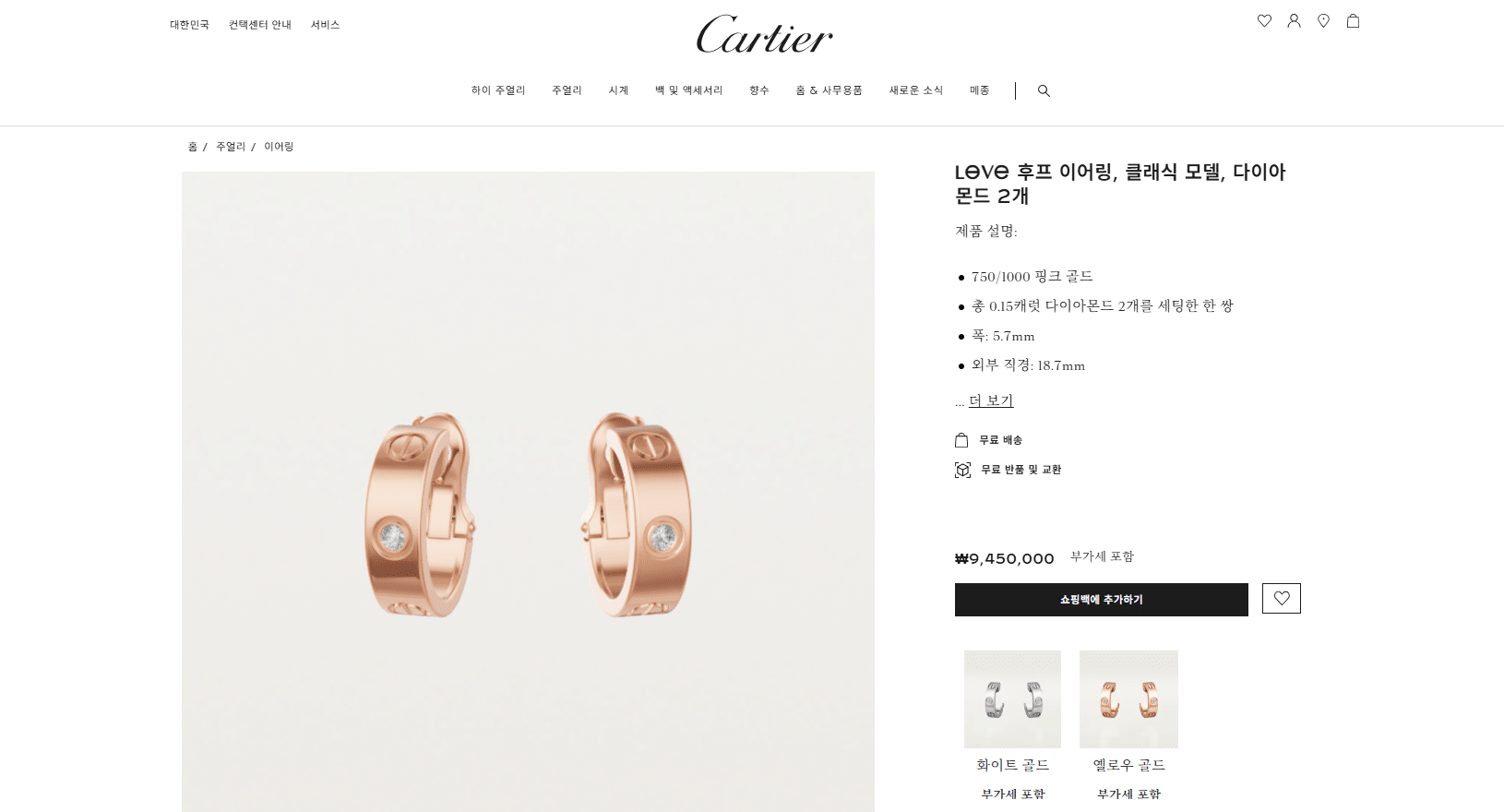 “[까르띠에] LOVE 후프 이어링 (3 COLORS)”의 첫 상품평을 남겨 주세요 응답 취소