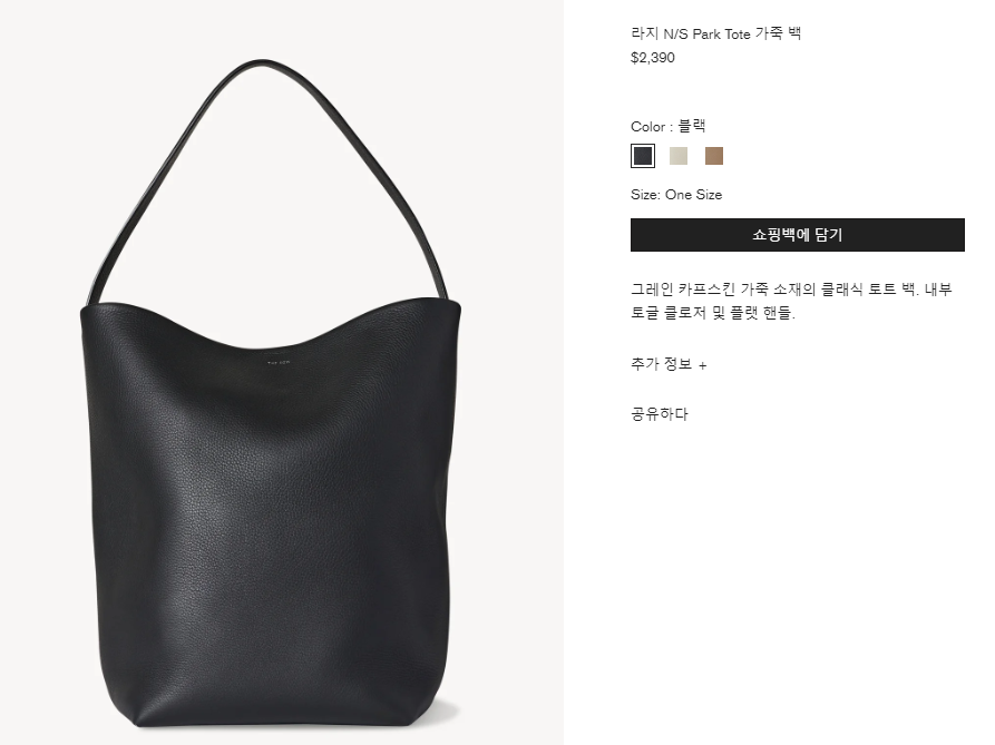[더 로우] 라지 N/S 파크(Park) 토트 가죽 백 W1273L129BLPL