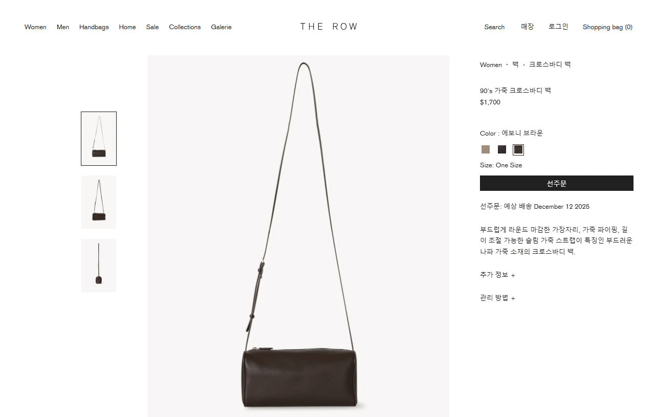 “[더 로우] 90’s 가죽 크로스바디 백 / 에보니 브라운”의 첫 상품평을 남겨 주세요 응답 취소