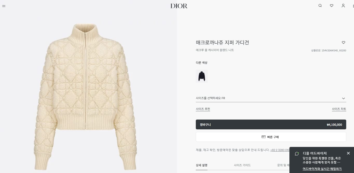 “[디올] 매크로까나쥬 지퍼 가디건 254V20AM340_X0200”의 첫 상품평을 남겨 주세요 응답 취소