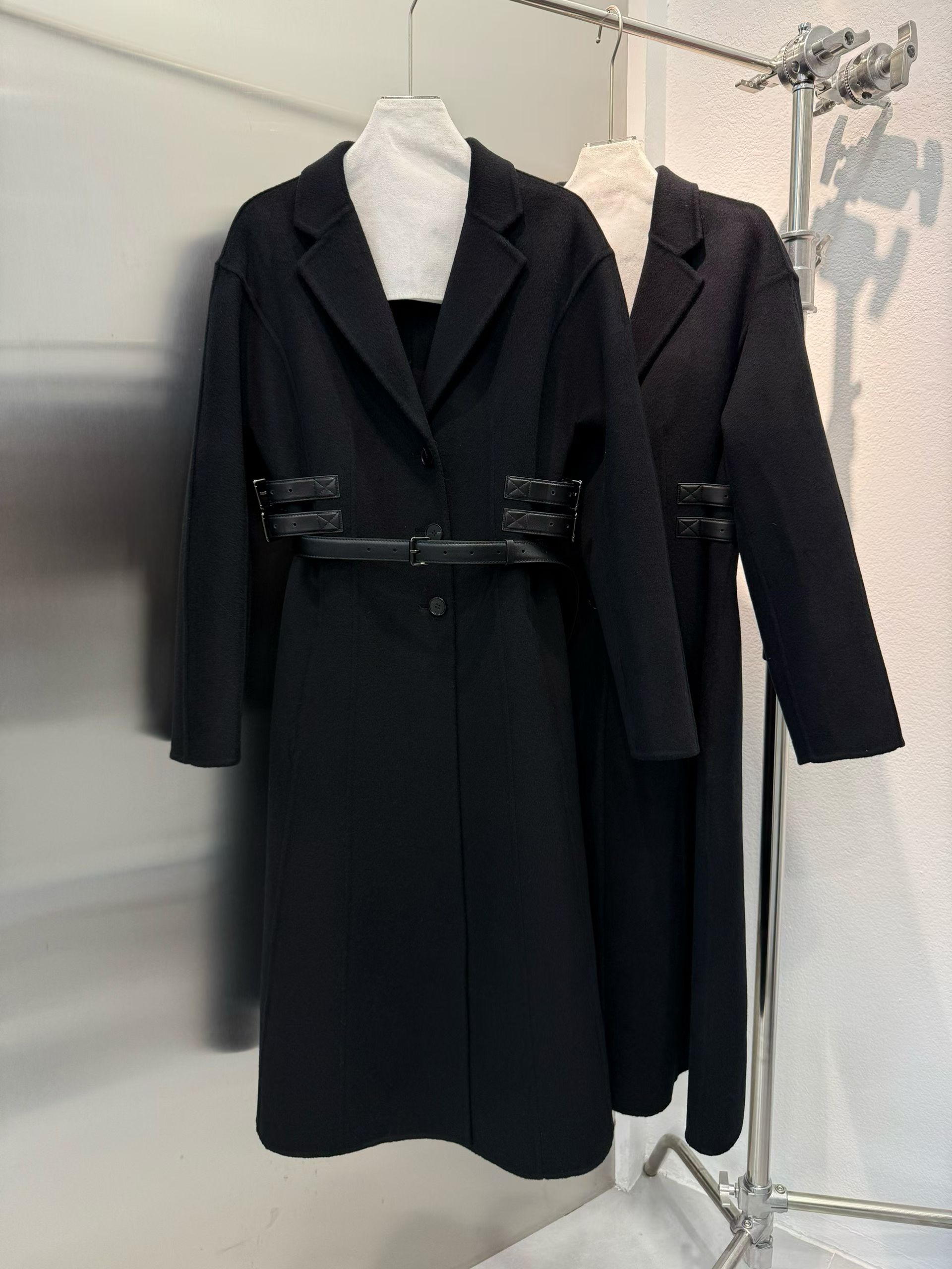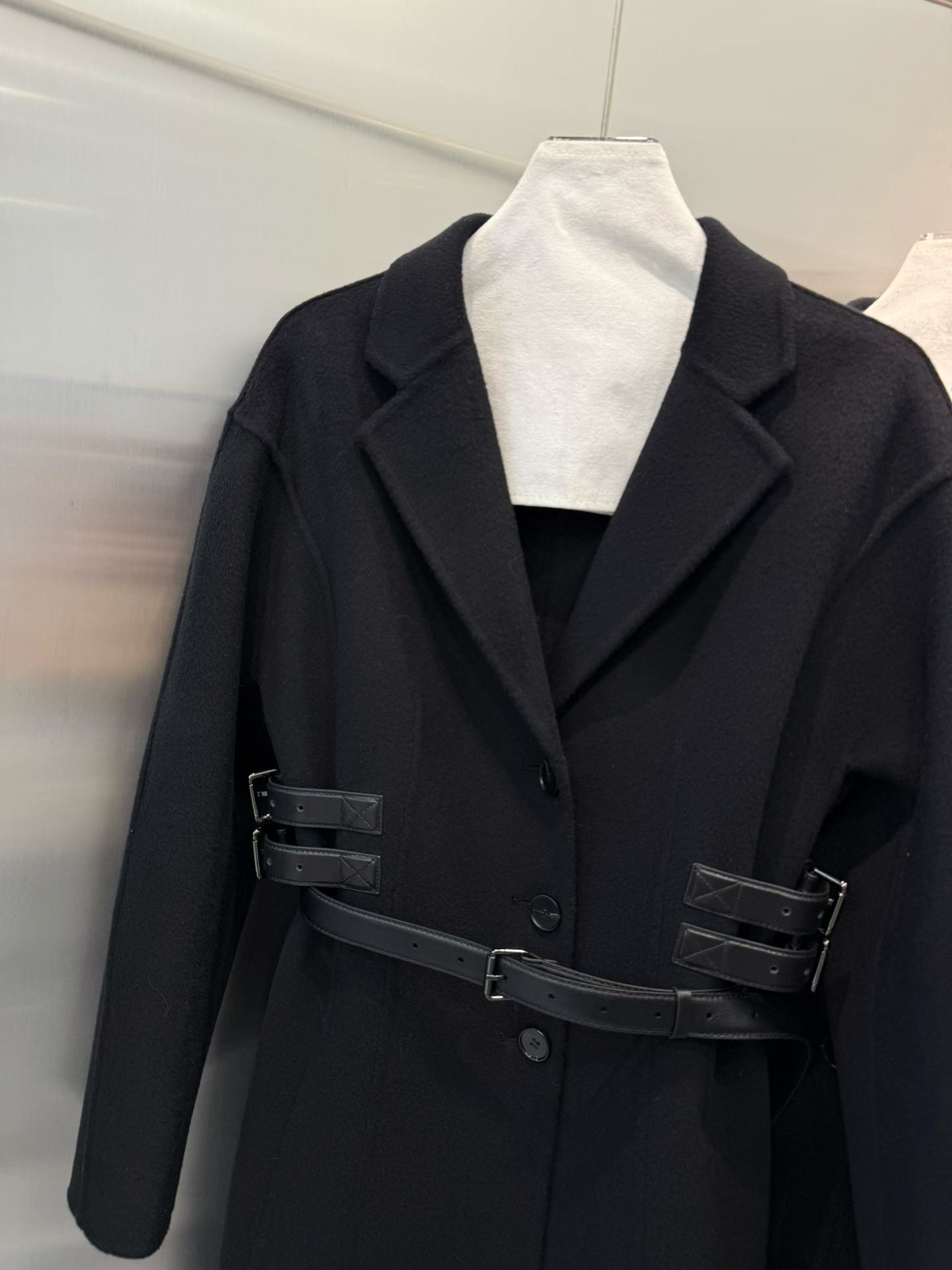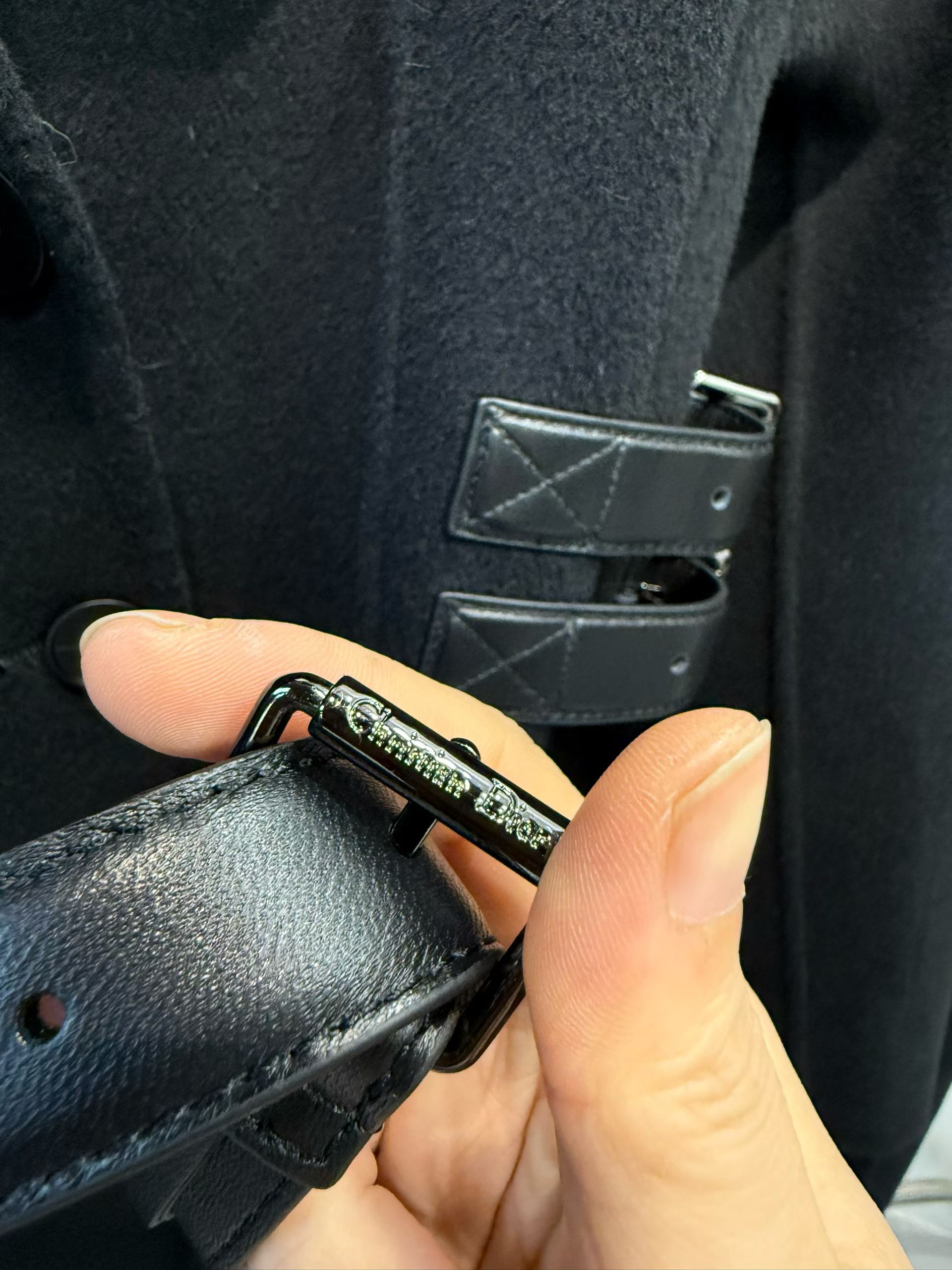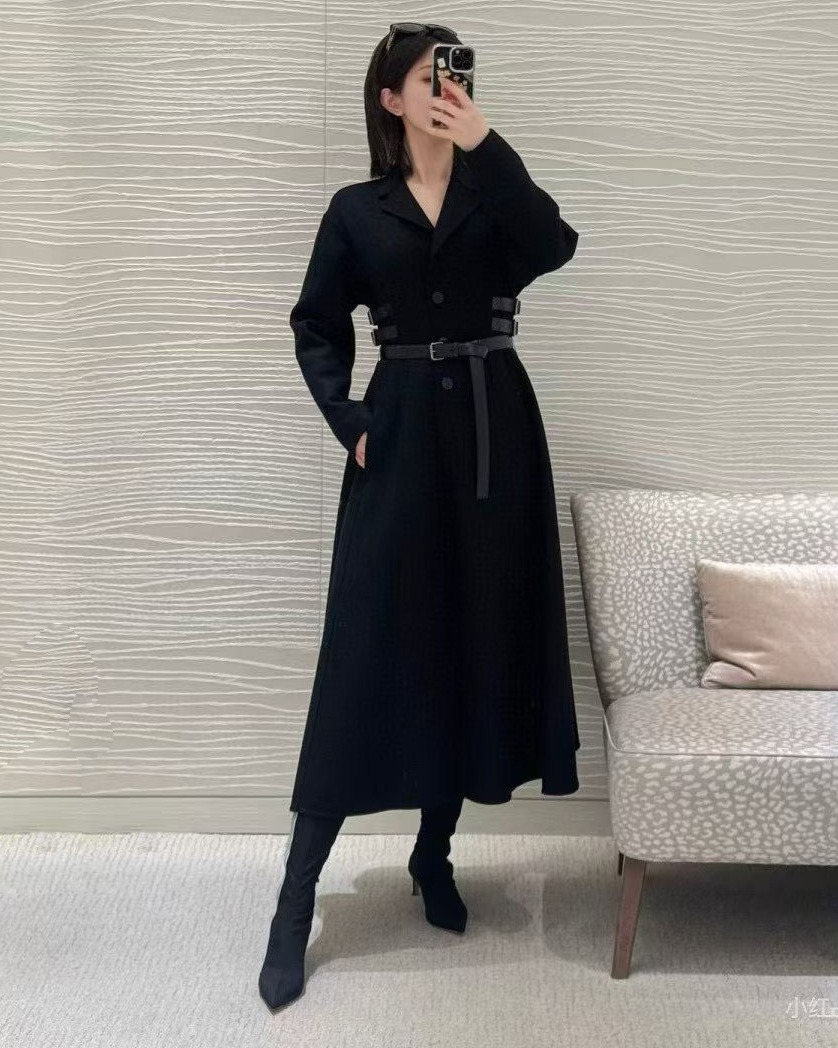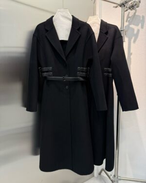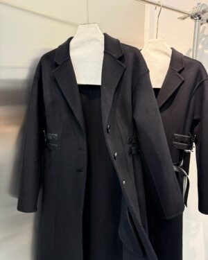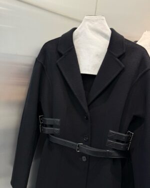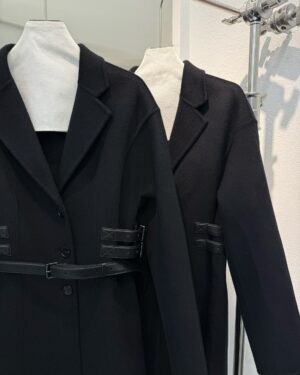 옆선을 따라 장식된 조절형 가죽 스트랩이 허리선을 세련되게 잡아주며, 탈착 가능한 블랙 가죽 벨트를 더해 하이엔드 쿠튀르 감성의 완성도를 높였다. 클래식과 모던함이 공존하는 Dior 특유의 매력이 담긴 시그니처 아우터다.