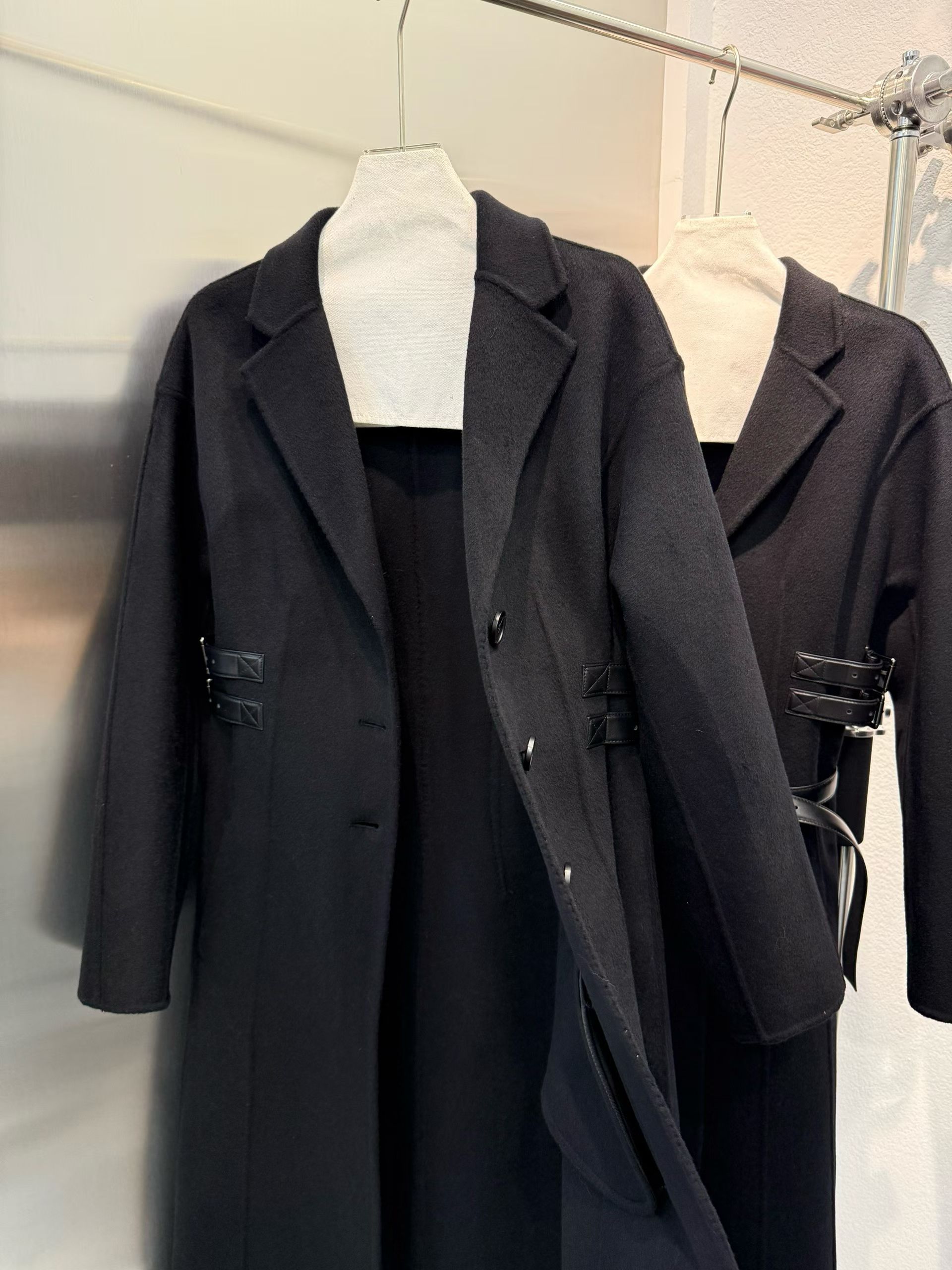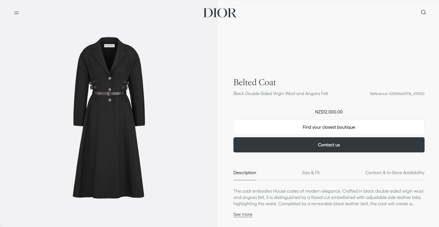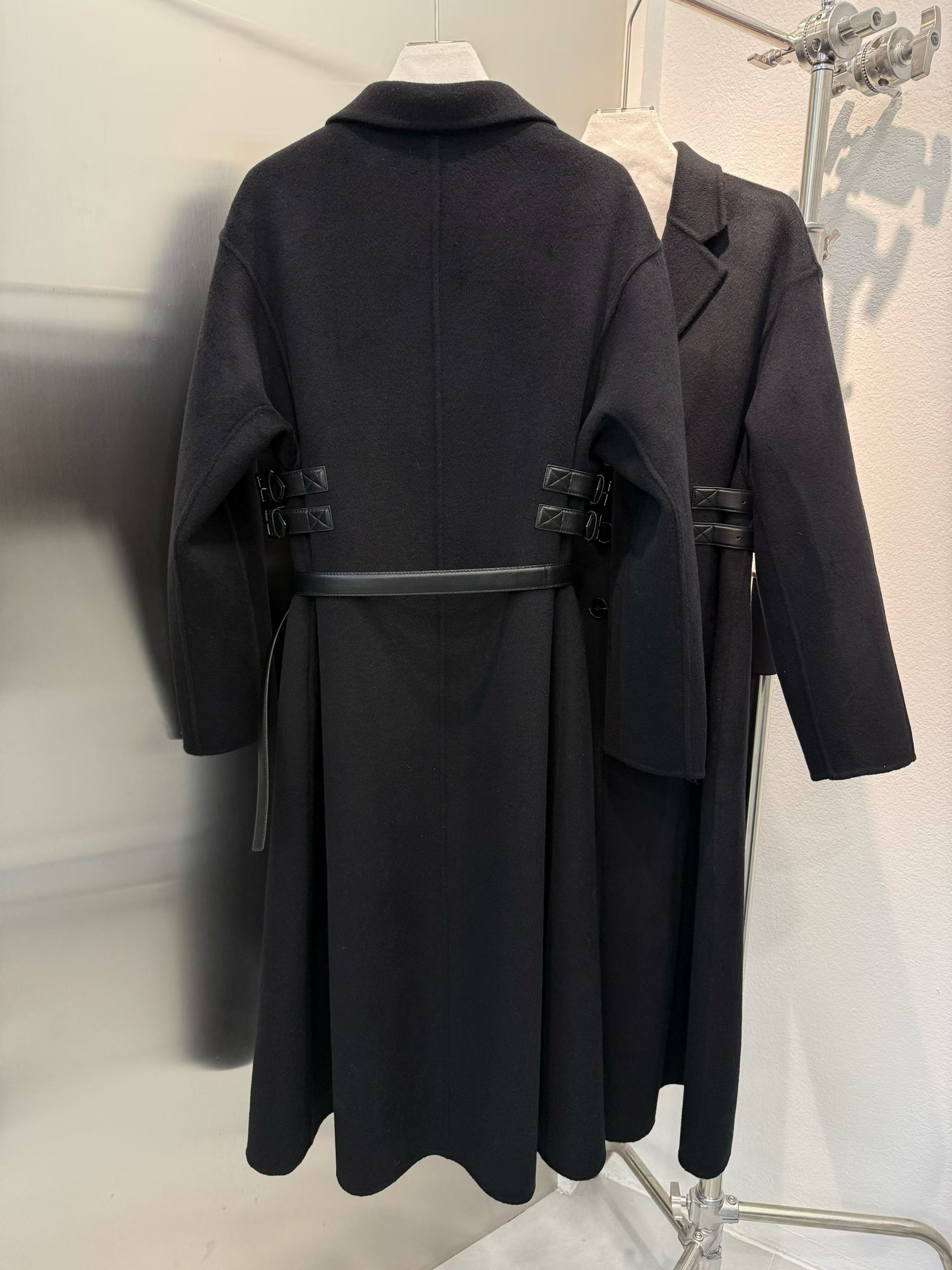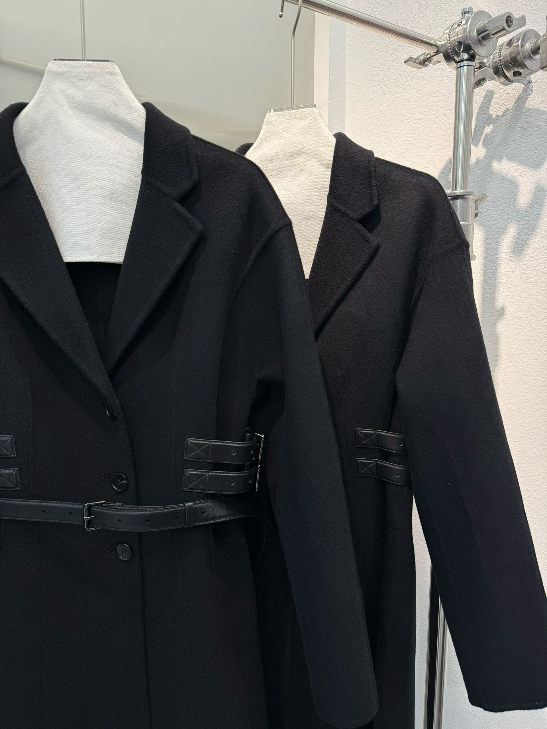 옆선을 따라 장식된 조절형 가죽 스트랩이 허리선을 세련되게 잡아주며, 탈착 가능한 블랙 가죽 벨트를 더해 하이엔드 쿠튀르 감성의 완성도를 높였다. 클래식과 모던함이 공존하는 Dior 특유의 매력이 담긴 시그니처 아우터다.