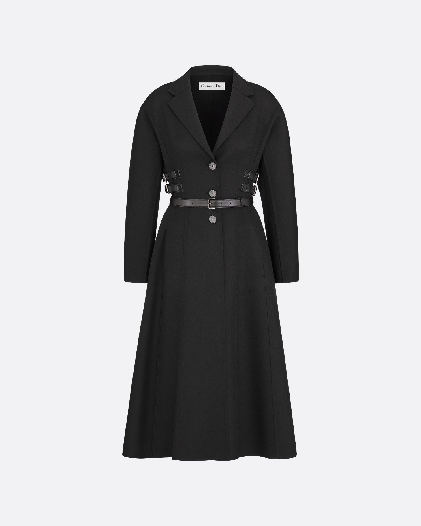 현대적인 우아함을 재해석한 Dior 2025 가을·겨울 시즌 신작 캐시미어 코트. 깊은 블랙 컬러의 더블페이스 울과 앙고라 울 펠트 소재로 제작되어, 구조적이면서도 유연한 플레어 라인을 완성한다. 미니멀한 테일러드 카라와 견고한 핸드 스티치가 어우러져 고급스러운 실루엣을 강조한다.