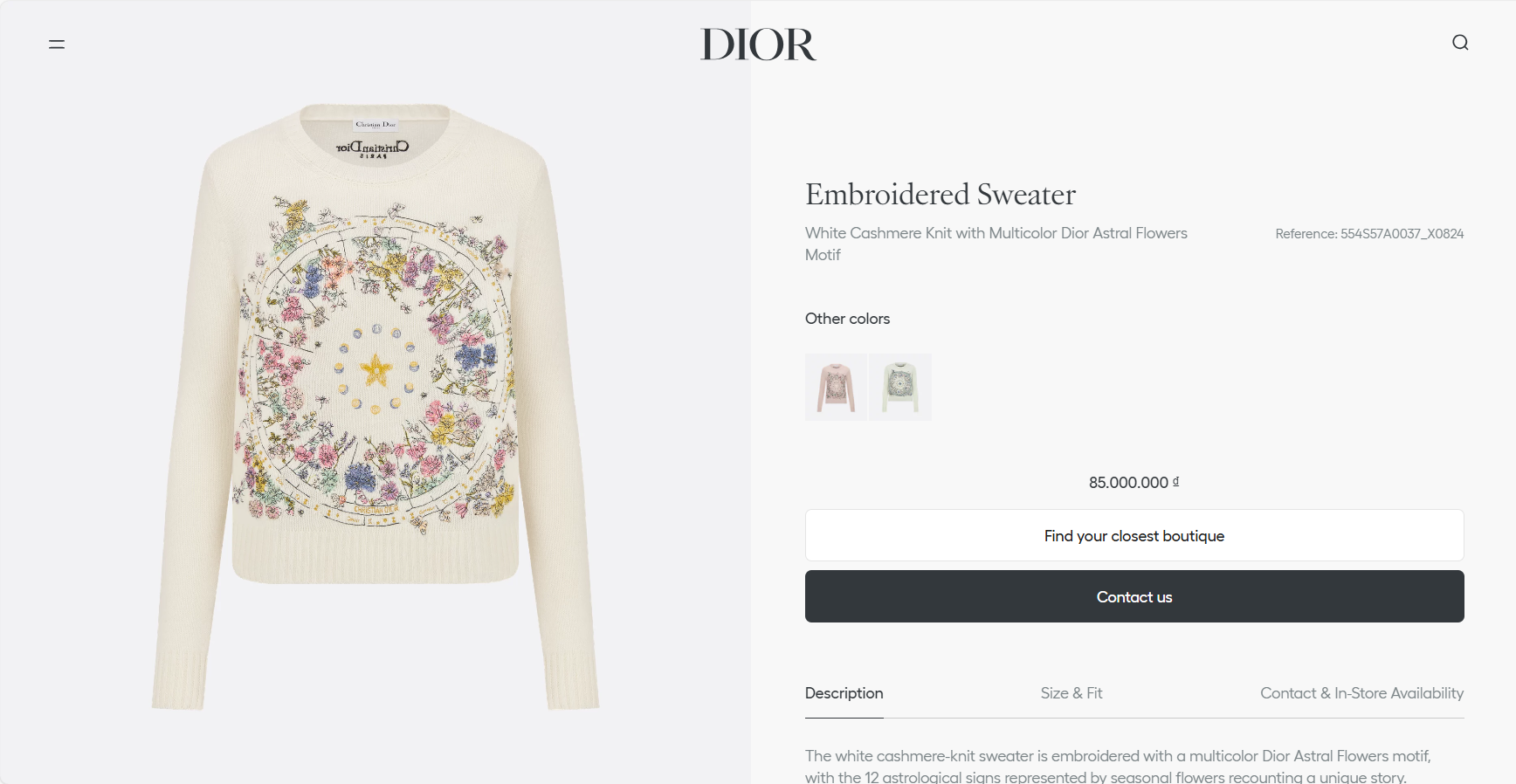 Dior Astral Flowers 모티브 캐시미어 니트