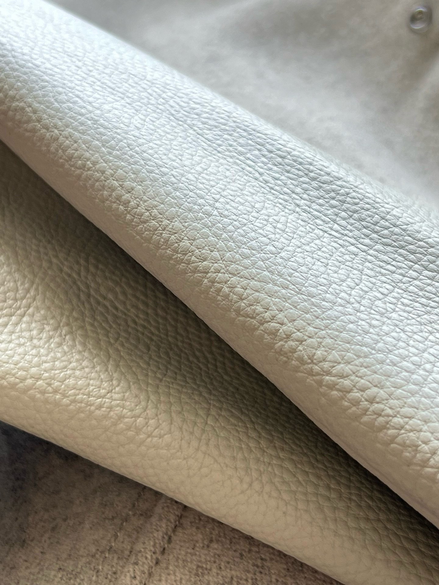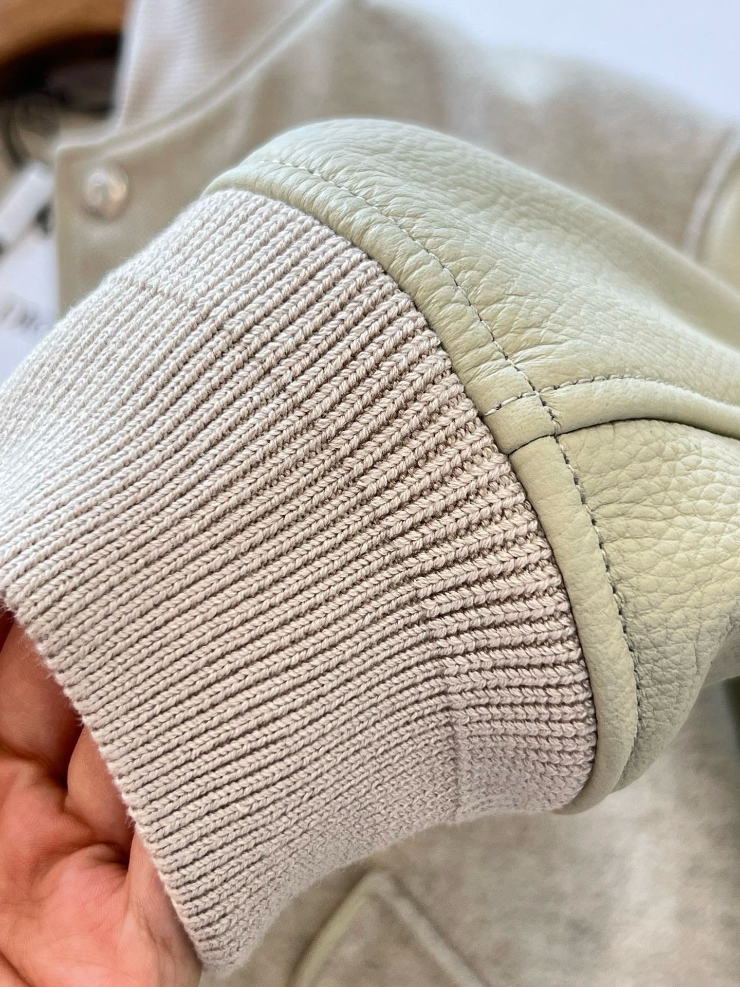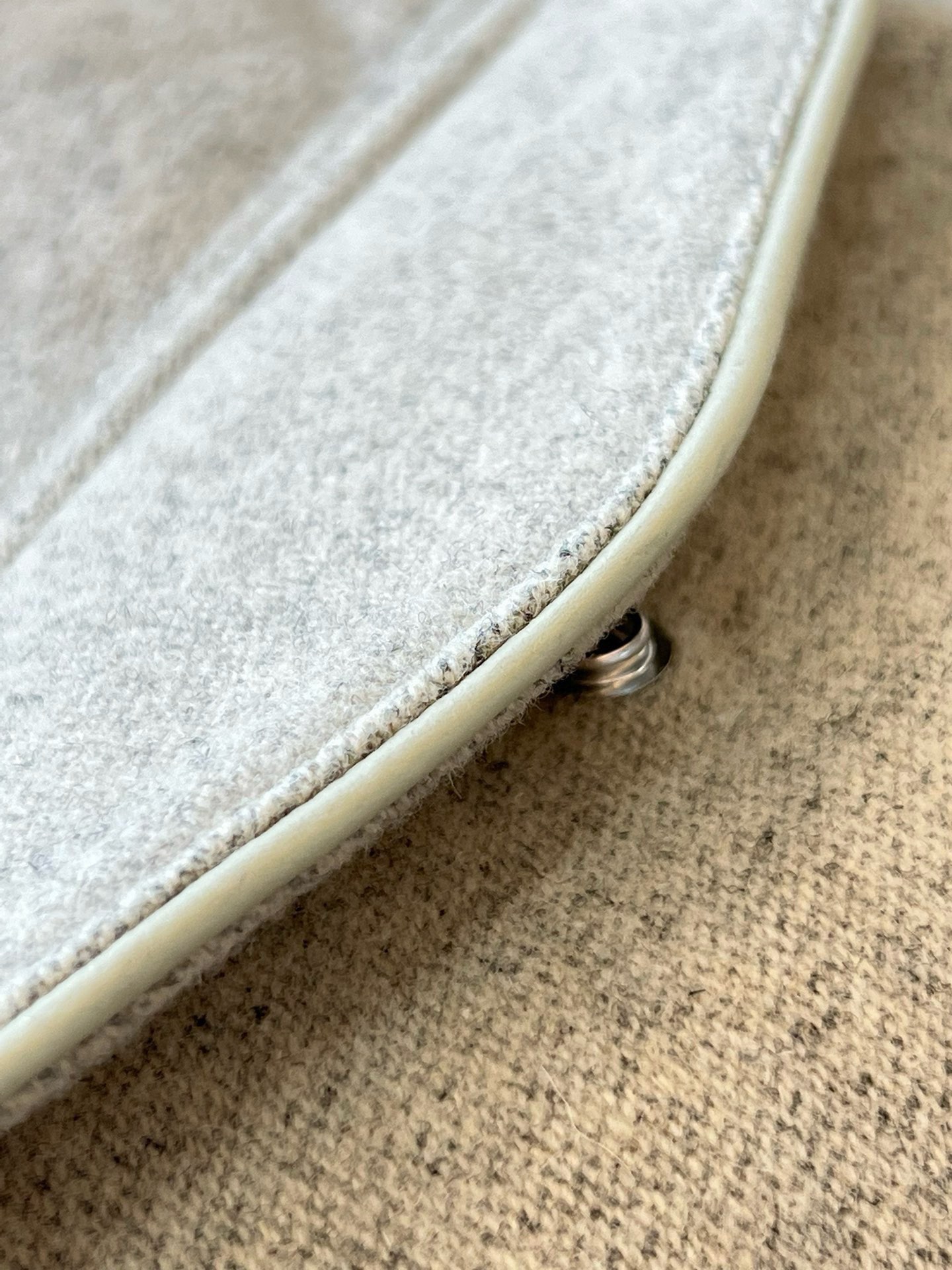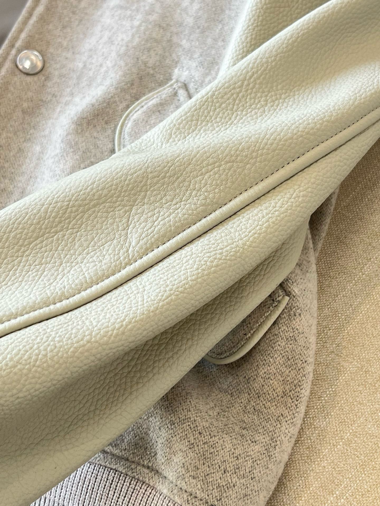 소재: 천연 송아지 가죽 (Calfskin) + 울 혼방 패브릭