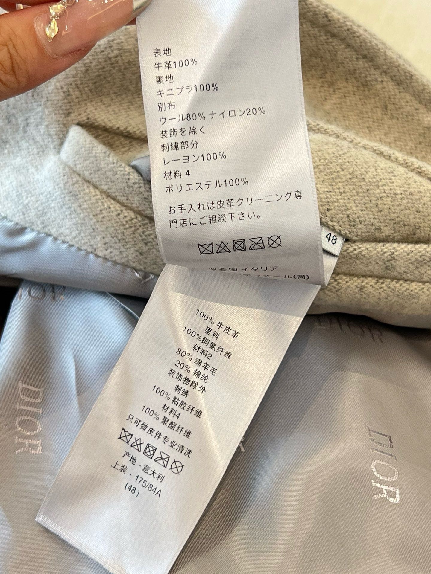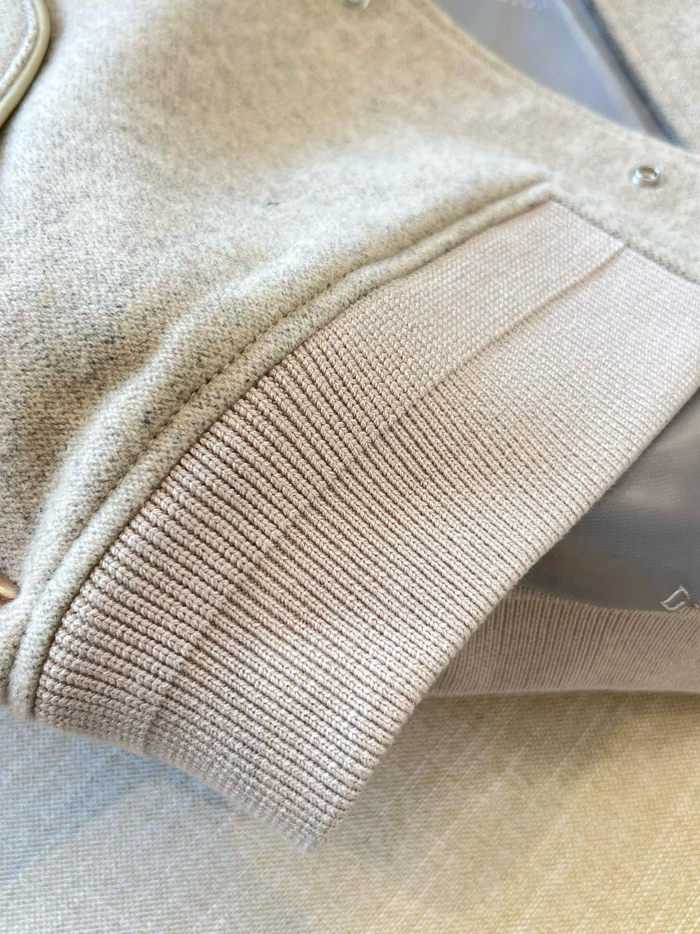 리브 처리된 칼라와 밑단이 클래식한 실루엣을 완성하고, 뒷면에 정교하게 수놓인 “Christian Dior Couture 1947” 자수 로고가 브랜드의 장인정신을 상징합니다. 세련된 뉴트럴 톤 컬러와 미니멀한 디자인으로 포멀룩부터 캐주얼까지 폭넓게 스타일링 가능한 하이엔드 블루종입니다.