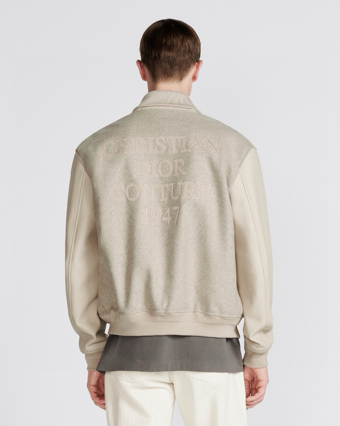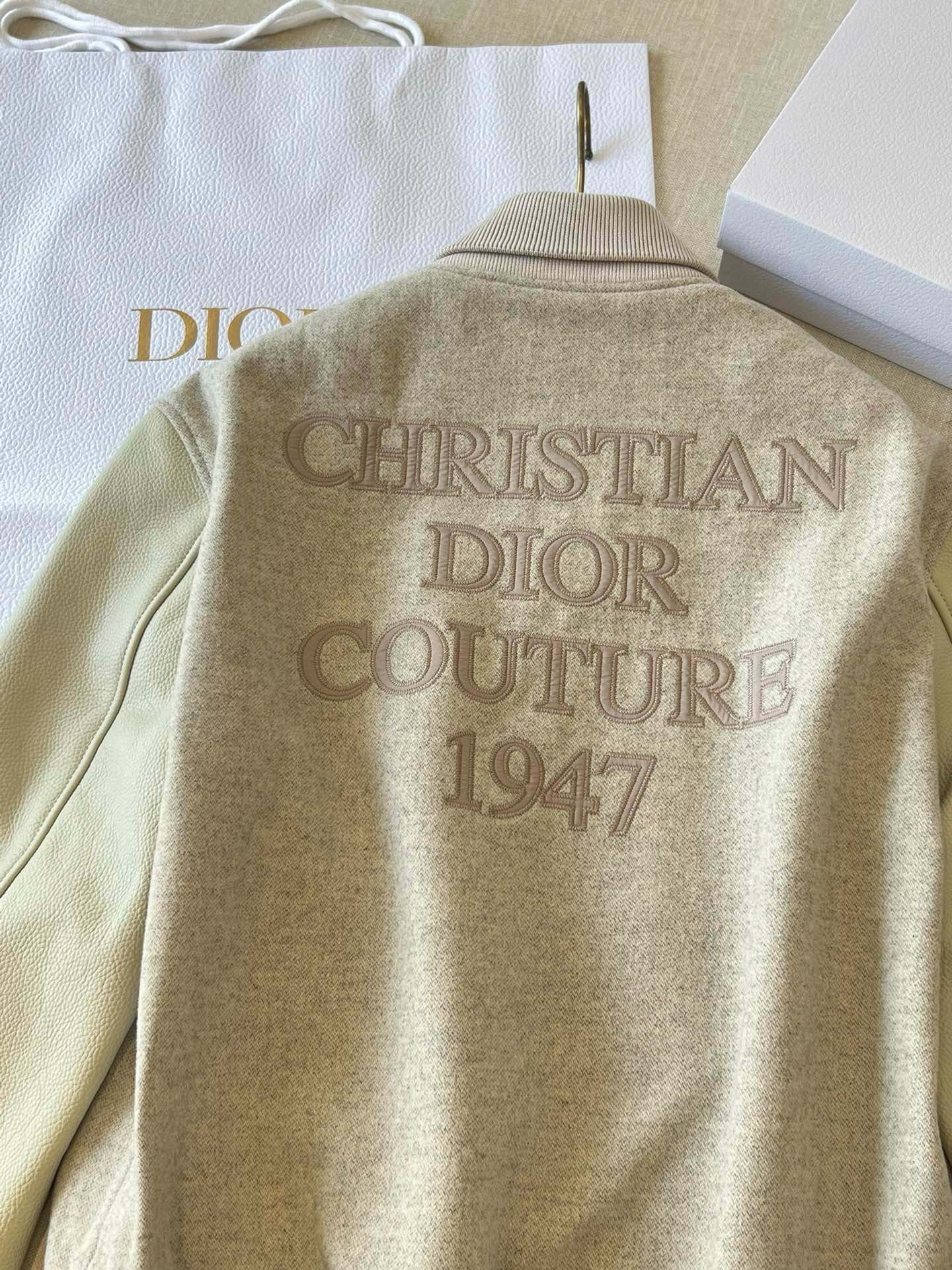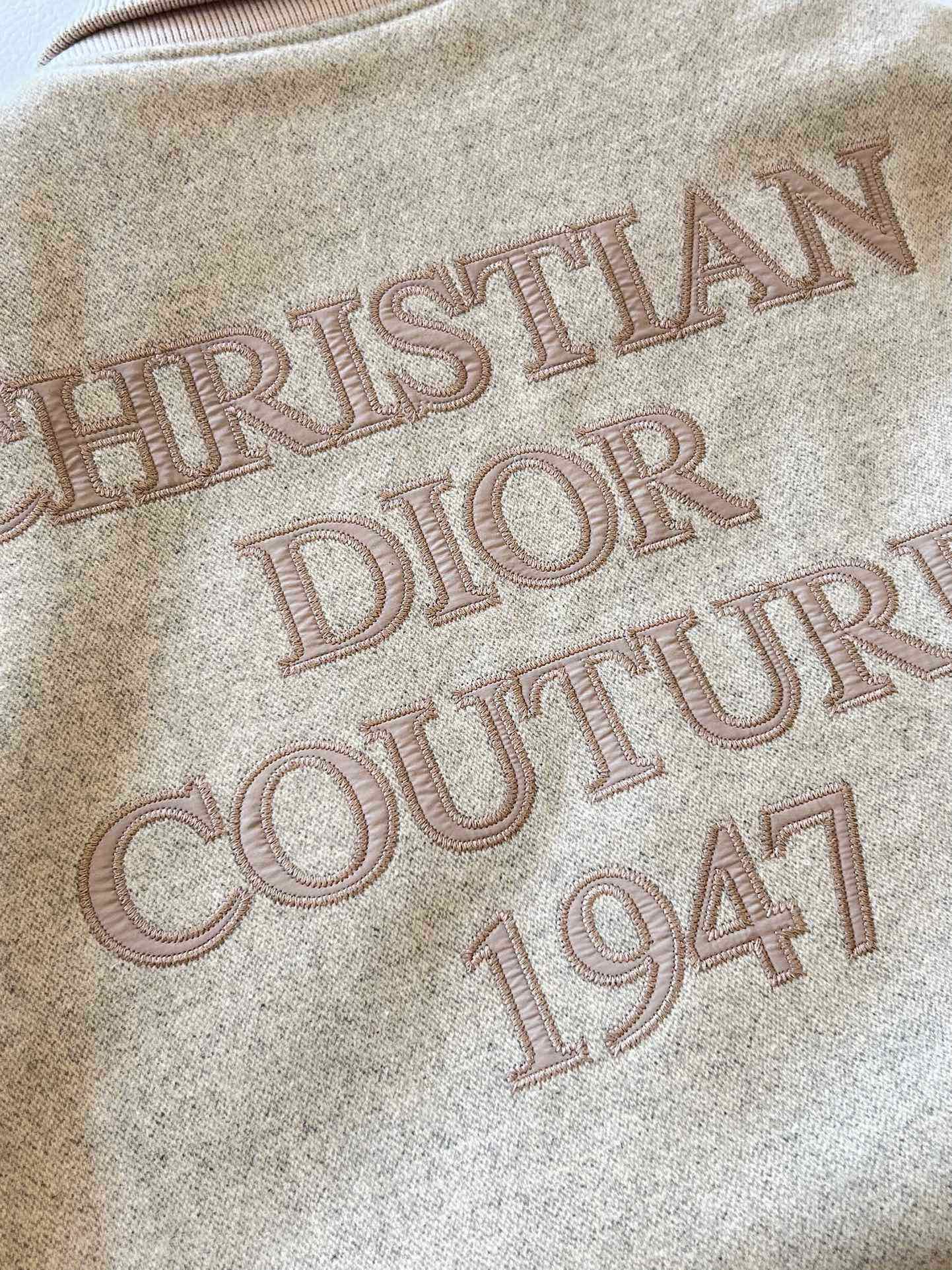리브 처리된 칼라와 밑단이 클래식한 실루엣을 완성하고, 뒷면에 정교하게 수놓인 “Christian Dior Couture 1947” 자수 로고가 브랜드의 장인정신을 상징합니다. 세련된 뉴트럴 톤 컬러와 미니멀한 디자인으로 포멀룩부터 캐주얼까지 폭넓게 스타일링 가능한 하이엔드 블루종입니다.