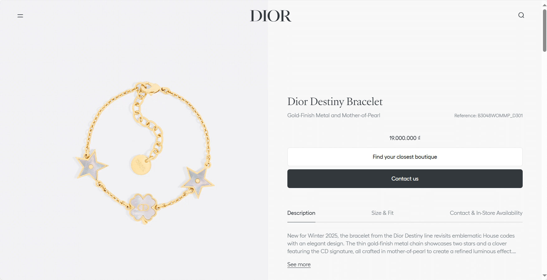 “[디올] Dior Destiny 팔찌”의 첫 상품평을 남겨 주세요 응답 취소
