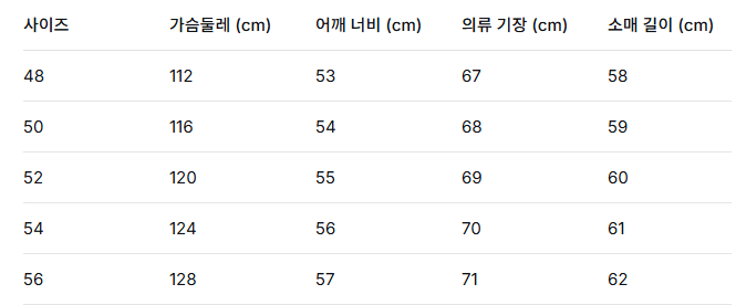 사이즈: 48 / 50 / 52 / 54 / 56