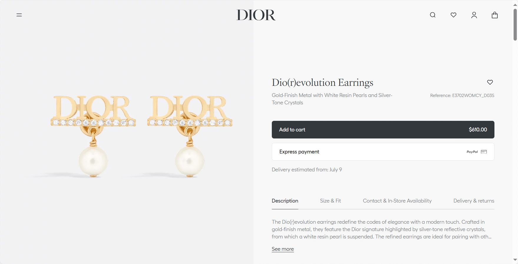 “[디올] Dio(r)evolution 귀걸이 E3702WOMCY”의 첫 상품평을 남겨 주세요 응답 취소