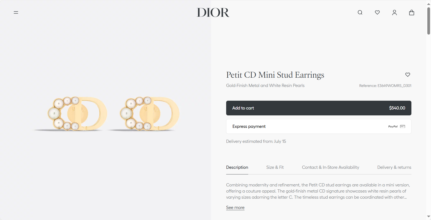 “[디올] Petit CD 미니 스터드 귀걸이 E3649WOMRS”의 첫 상품평을 남겨 주세요 응답 취소