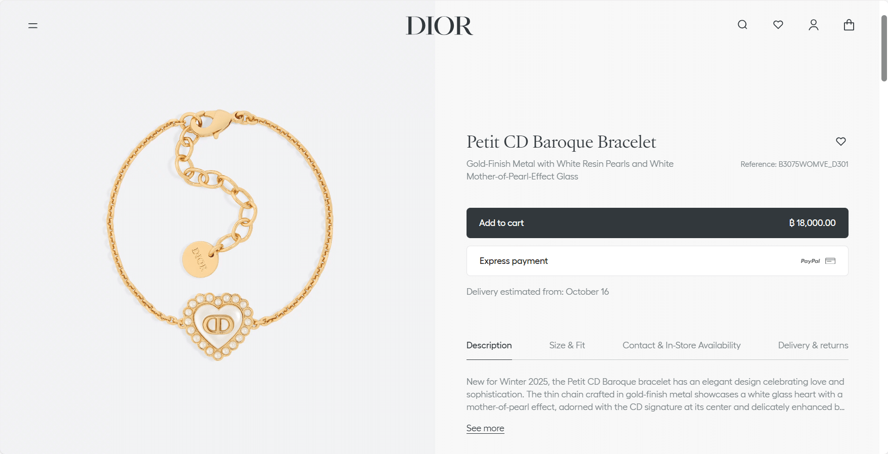 “[디올] Petit CD Baroque 팔찌 (2 COLORS)”의 첫 상품평을 남겨 주세요 응답 취소