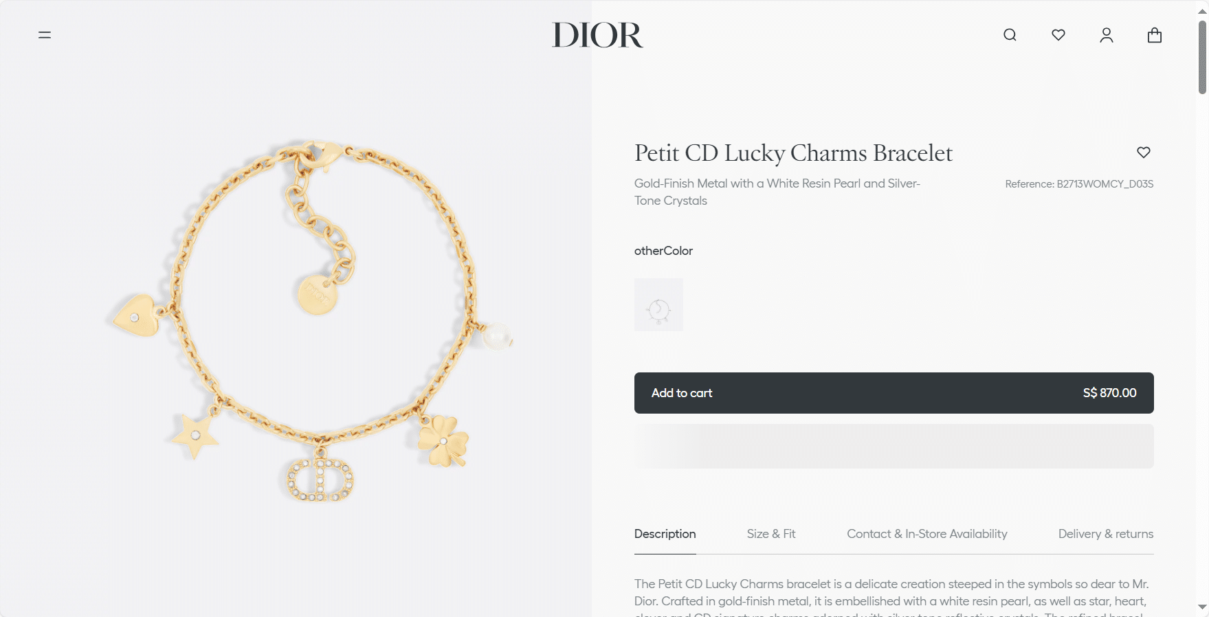 “[디올] Petit CD Lucky Charms 팔찌 B2713WOMCY”의 첫 상품평을 남겨 주세요 응답 취소