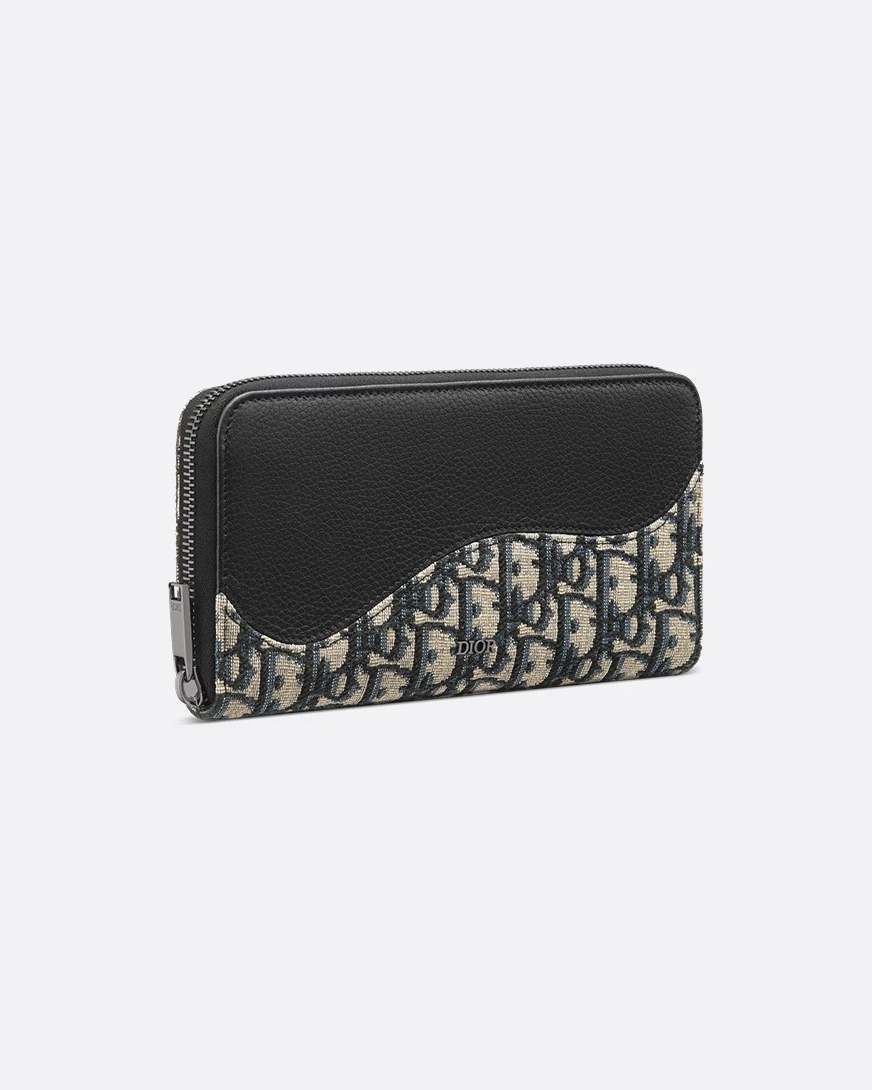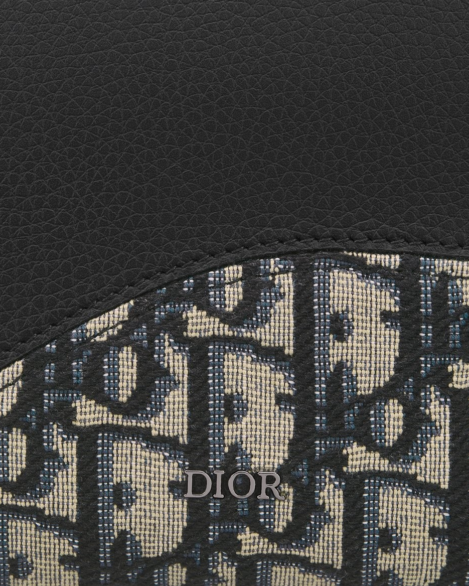 블랙 그레인 송아지 가죽 마르퀘트리 & 베이지, 블랙 Dior Oblique 자카드
