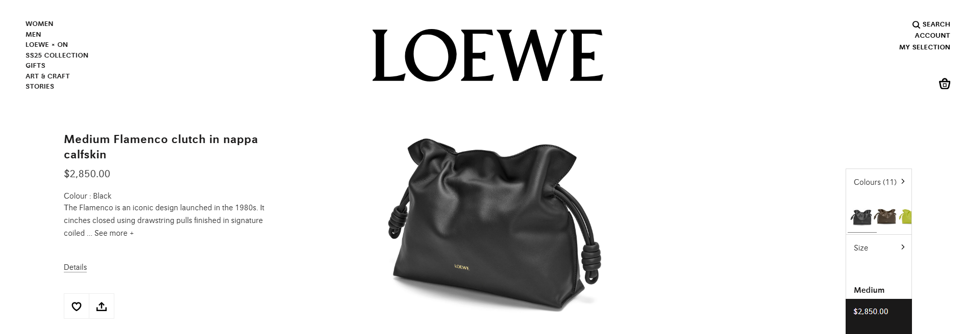 [로에베] 미디움 플라멩코 클러치 나파 카프스킨 블랙 0010966075