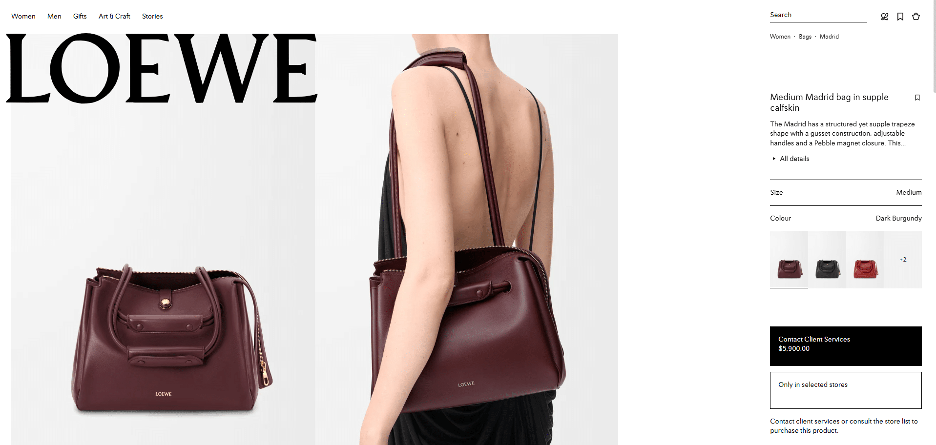 [로에베] 미디엄 마드리드 백 서플 카프스킨/다크 버건디