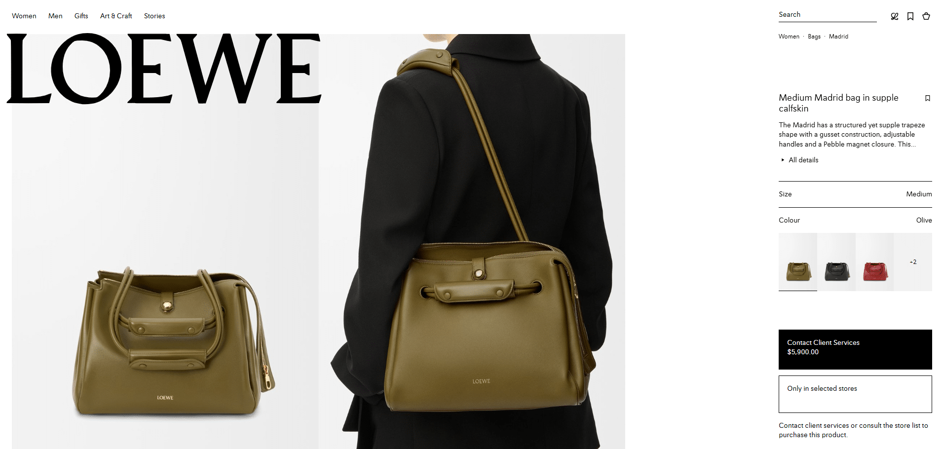 [로에베] 미디엄 마드리드 백 서플 카프스킨/올리브