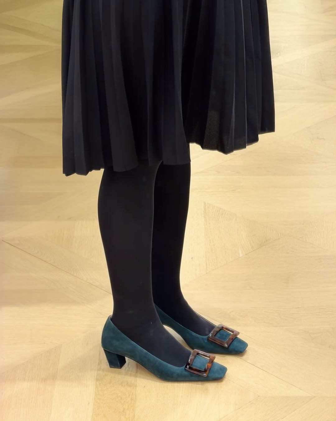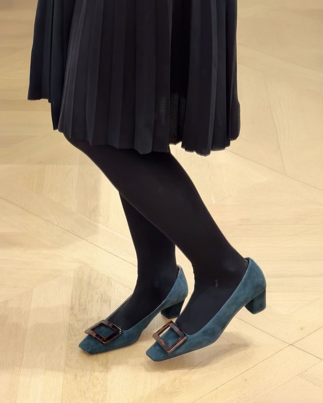 디자인: 거북등껍질 무늬버클 스퀘어 토 블록 힐 펌프스